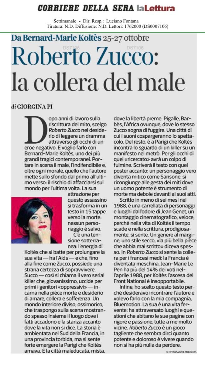 “Roberto Zucco: la collera del male” | Giorgina Pi | La Lettura @Corriere della Sera