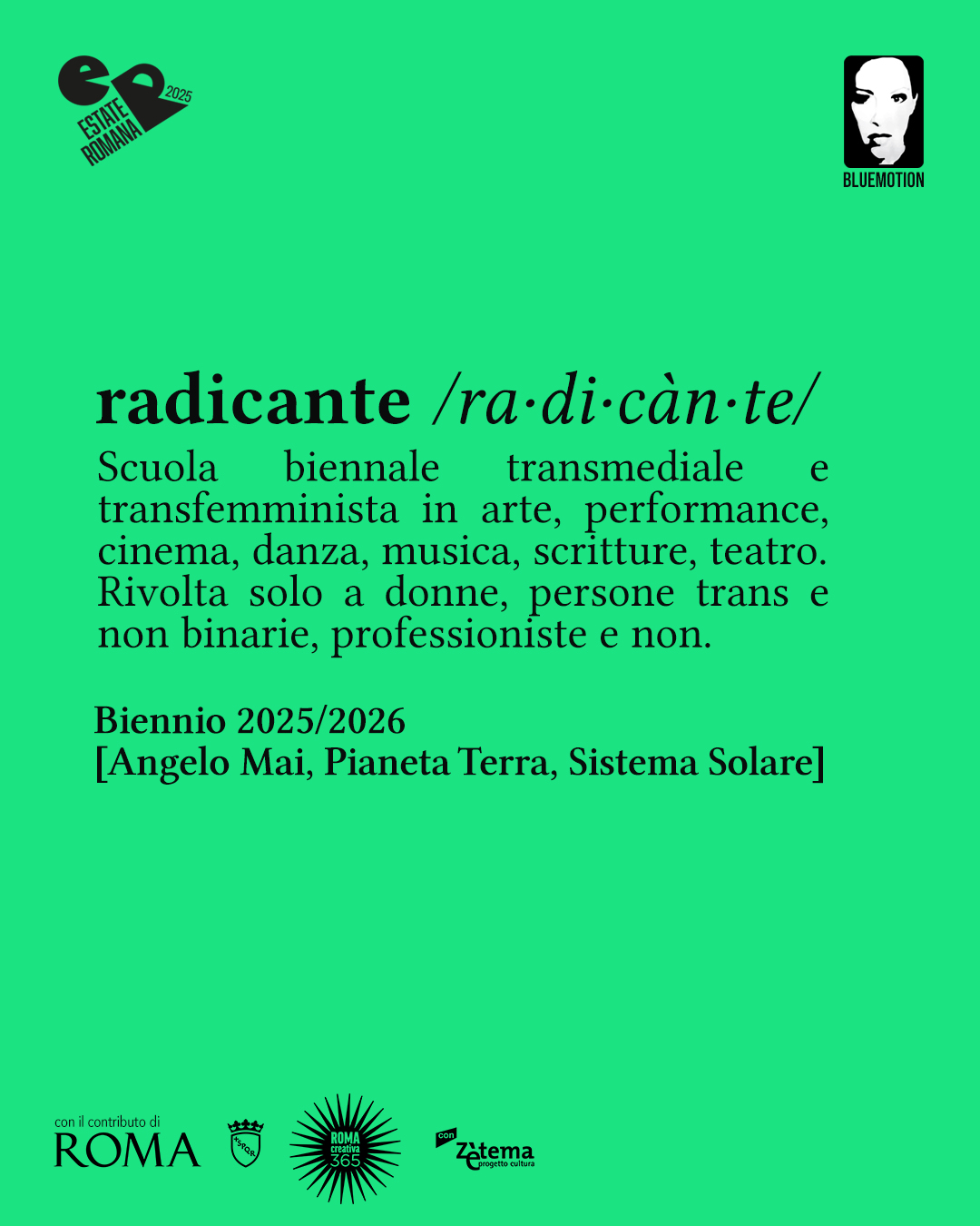 All’Angelo Mai a Roma nasce un progetto inedito, sotto l’ideazione e la direzione di Giorgina Pi e del suo collettivo Bluemotion, una scuola delle arti transmediale, transfemminista, separatista, per professioniste e non, dall’adolescenza all’età anziana: si chiama Radicante.