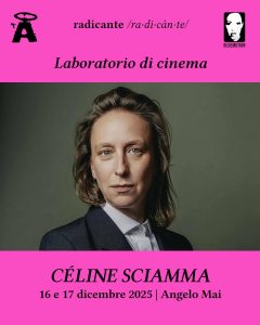 LABORATORIO DI CINEMA CON CÉLINE SCIAMMA 16 e 17 dicembre 2025 | ore 17:00 - 20:00 | Angelo Mai Iscriviti al link https://tally.so/r/81qj0o (Solo per donne, persone trans e non binarie) Céline Sciamma, una delle più importanti registe e sceneggiatrici del cinema contemporaneo, autrice di film che hanno definito una nuova sensibilità politica ed estetica - tra gli altri Ritratto della giovane in fiamme, Tomboy, Petite Maman - porterà nella scuola Radicante il proprio sguardo, il proprio metodo e la…
