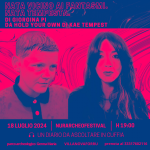 18 luglio 2024 ore 19.00 Nurarcheofestival | Parco Archeologico Genna Maria | Villanovaforru Nata vicino ai fantasmi. Nata tempesta. di Giorgina Pi da Hold your Own di Kae Tempest Un diario da ascoltare in cuffia Nata vicino ai fantasmi. Nata tempesta. è il diario che ho ricostruito a posteriori sulla mia scoperta di Tiresia nei versi di Kae Tempest negli anni in cui ho lavorato allo spettacolo Tiresias. È anche il diario degli appunti di dove lə miə immaginariə Tiresia…