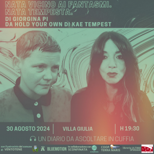 30 agosto 2024 | ore 19:30 | Area Archeologica di Villa Giulia | Ventotene NATA VICINO AI FANTASMI. NATA TEMPESTA. Un diario da ascoltare in cuffia di Giorgina Pi da Hold your own di Kae Tempest Con il patrocinio del comune di Ventotene e la preziosa collaborazione di Sconfinata aps, della Cooperativa Terra Maris e della Libreria Ultima Spiaggia. NB performance a posti limitati. PRENOTAZIONE OBBLIGATORIA bluemotion.contact@gmail.com ________________________________________________________________________________ Nata vicino ai fantasmi. Nata tempesta. è il diario che ho ricostruito…